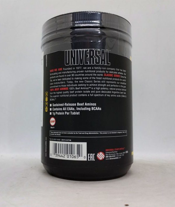 100% Beef Aminos de Universal Nutrition es tu complemento básico para conseguir masa muscular como siempre has deseado!