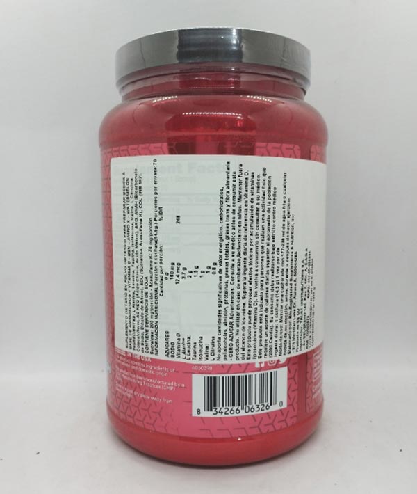 Ingredientes: L-alanina, leucina, taurina, isoleucina, valina, l-citrulina, colecalciferol, ac reg (acido citrico, acido malico) aro, anah (bicarbonato de sodio, dioxido de silicio), edu (sucralosa, acesulfame k), col. contiene derivados de soja