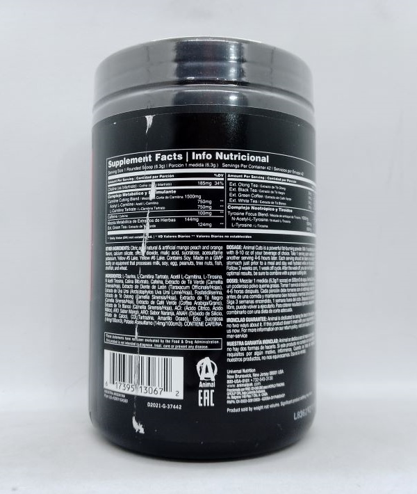 Animal Cuts Powder es la versión en polvo de nuestro suplemento para quemar y triturar grasa con 17 ingredientes quemagrasas para estimular su metabolismo, suprimir el apetito, ayudar a definir los músculos, apoyar la salud del cerebro y ayudar con el control del peso. COMPLEJOS TERMOGÉNICOS Y METABÓLICOS