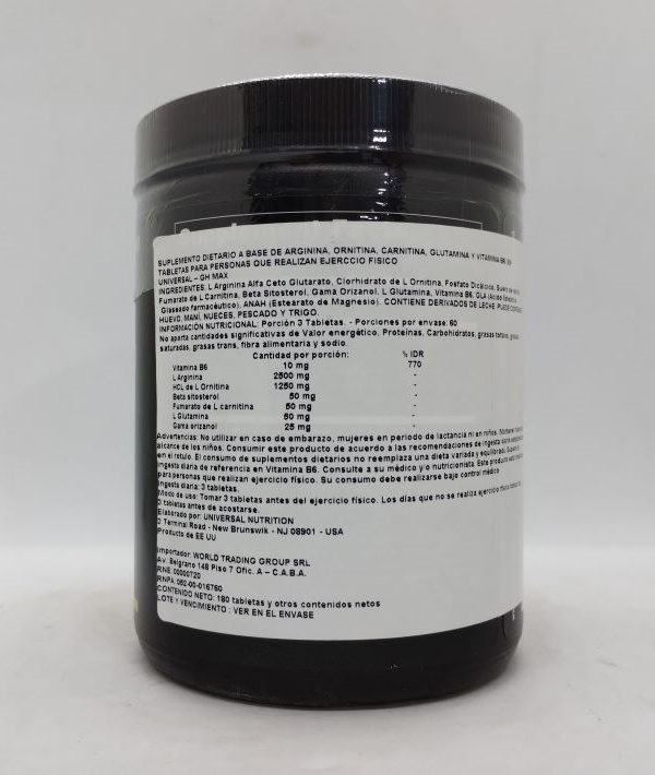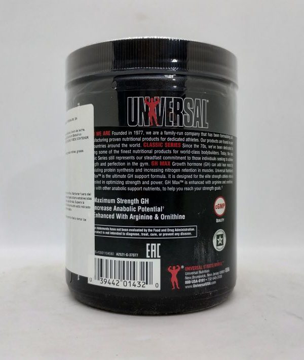 GH Max de Universal Nutrition, con su mezcla selecta de secretores de GH, vitaminas, steroles de plantas, boro y la proporción 2:1 farmacológicamente-probada de arginina le ayuda a tu cuerpo a levantar de forma natural la secreción de GH. GH Max puede y tiene que ser tu aliado de confianza si eres practicante de cualquier deporte que requiere masa muscular y fuerza: ciclismo, natación, futbol, atletismo etc.