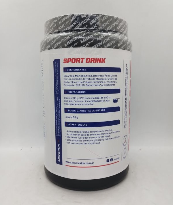Mervick Lab acerca al deportista una bebida de excelencia como Sport Drink. Sport drink es una bebida refrescante de delicioso sabor ´naranja- mandarina´ que permite una adecuada reposición de líquidos y electrolitos. No solo aporta carbohidratos, sodio y potasio, sino que también ha sido adicionada con magnesio, y dos vitaminas de importante acción antioxidante, la vitamina C y la vitamina E.