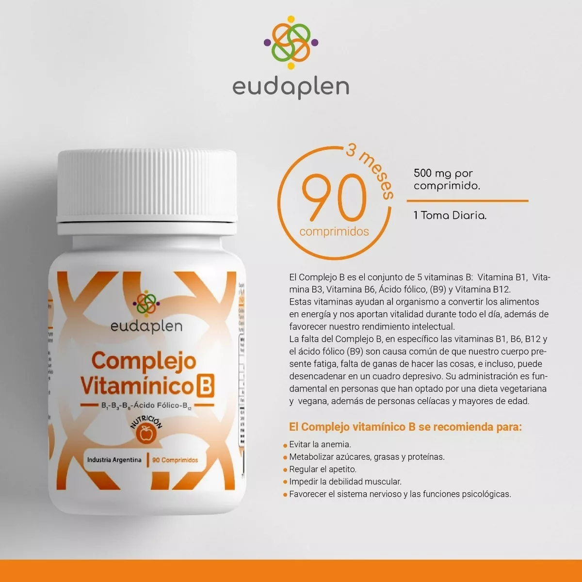 Envase de 90 comprimidos. Sin sabor agregado.