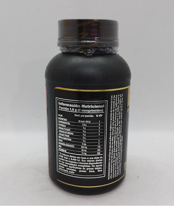 Información Nutricional: (Porción: 2 Comprimidos) Vitamina B6 – PIRIDOXINA HCI 11 Mg. / Magnesio Aspartato – Estearato 450 Mg. / Zinc Gluconato 11 Mg. / Carbohidratos Totales 0,9 Grs. / Fibra Alimentaria 0 Grs. / Proteínas 0 Grs. / Grasas Totales 0 Grs. / Grasas Saturadas 0 Grs. / Grasas Trans 0 Grs. / Colesterol 0 Grs.