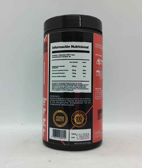 Es la fórmula mineral anabólica original y patentada, compuesta de Zinc, Magnesio, Vitamina B6 y Boro con resultados efectivos demostrados científicamente.